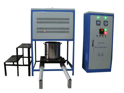 此款為一款立式電阻爐,將一個(gè)漏斗式坩堝置于爐內(nèi),將配好的熔塊料直接從上邊投入坩堝內(nèi),坩堝底部有圓形孔流料口,由一根長(zhǎng)塞棒與坩堝底部流料孔密封對(duì)接。通電加熱,在加熱時(shí)塞棒處于下壓狀態(tài)(在自身重力下),與流料孔密封接觸,保證加熱過(guò)程不外漏。加熱完成之后將塞棒向上提拉,開(kāi)始放料。相反如果松開(kāi)塞棒,則停止流料;如需不同流速,可采用不同直徑的短塞子與長(zhǎng)塞棒成套來(lái)控制。當(dāng)溫度上升到指定溫度時(shí),熔塊成熔融狀態(tài),由下面的流料孔(坩堝底部有個(gè)孔)自動(dòng)流入下面的容器中.